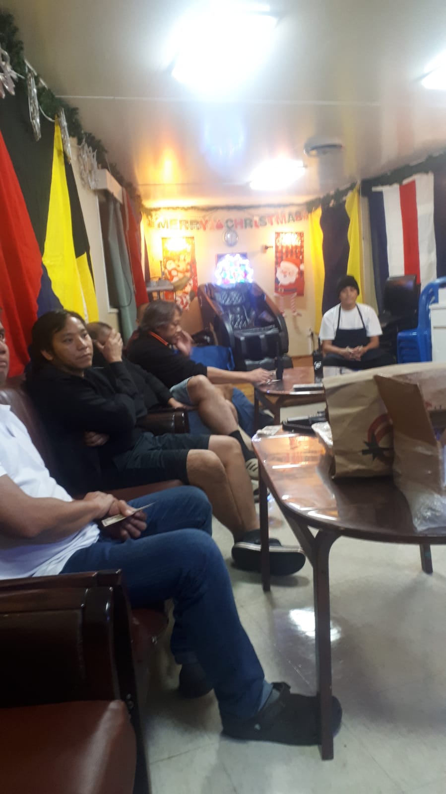 We shared scripture and gave our testimonies. Then we shared about how to have a personal relationship with God. They were all very attentive, even the captain, but the messman was just beaming with excitement.